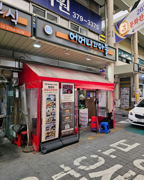 ํฌ๋ฐฉํฐ์์ฅ ์ชฝ์ ์๋ ‘์ด๋จธ๋์ ์๋ค’์ ํฌ๋ฐฉํฐ์์ฅ ๋ญ์๋ฆฌ ๋ง์ง์ผ๋ก ๋ง์ด ์๋ ค์ง ๊ณณ์ด์์. ์ ๋ ์ฌ์์น๊ตฌ๋ ์ ์ฌ์ผ๋ก ๋ฐฉ๋ฌธํ์ต๋๋ค. ์์ฅ ๊ทผ์ฒ๋ผ ์์ฌ ํ์ ๊ฐ๋ณ๊ฒ ๊ฑธ์ด ๋ค๋๊ธฐ์๋ ์ข์์ด์.